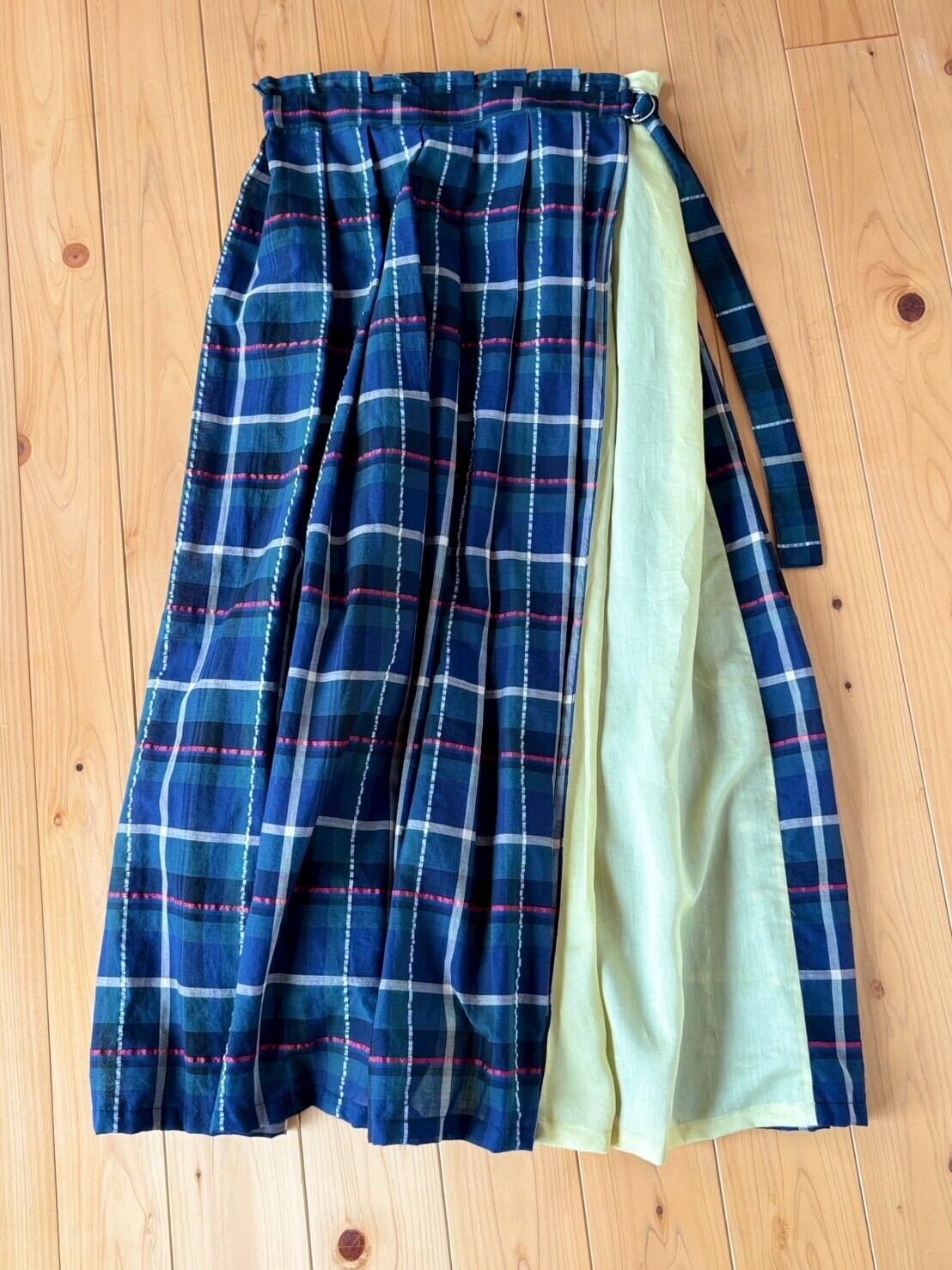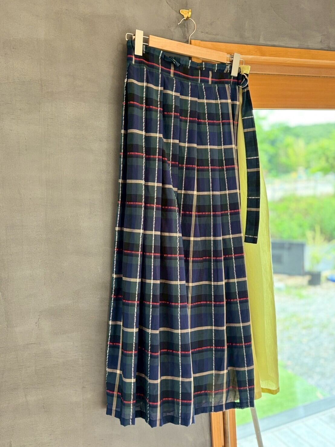 こちらの商品は、播州織を使用したセミオーダータックスカートのサンプル品です。軽やかなタータンチェックが特徴で、細部にまでこだわったデザインが魅力です。播州織の優れた質感が、着用時に心地よさを提供し、スタイルの幅を広げてくれます。